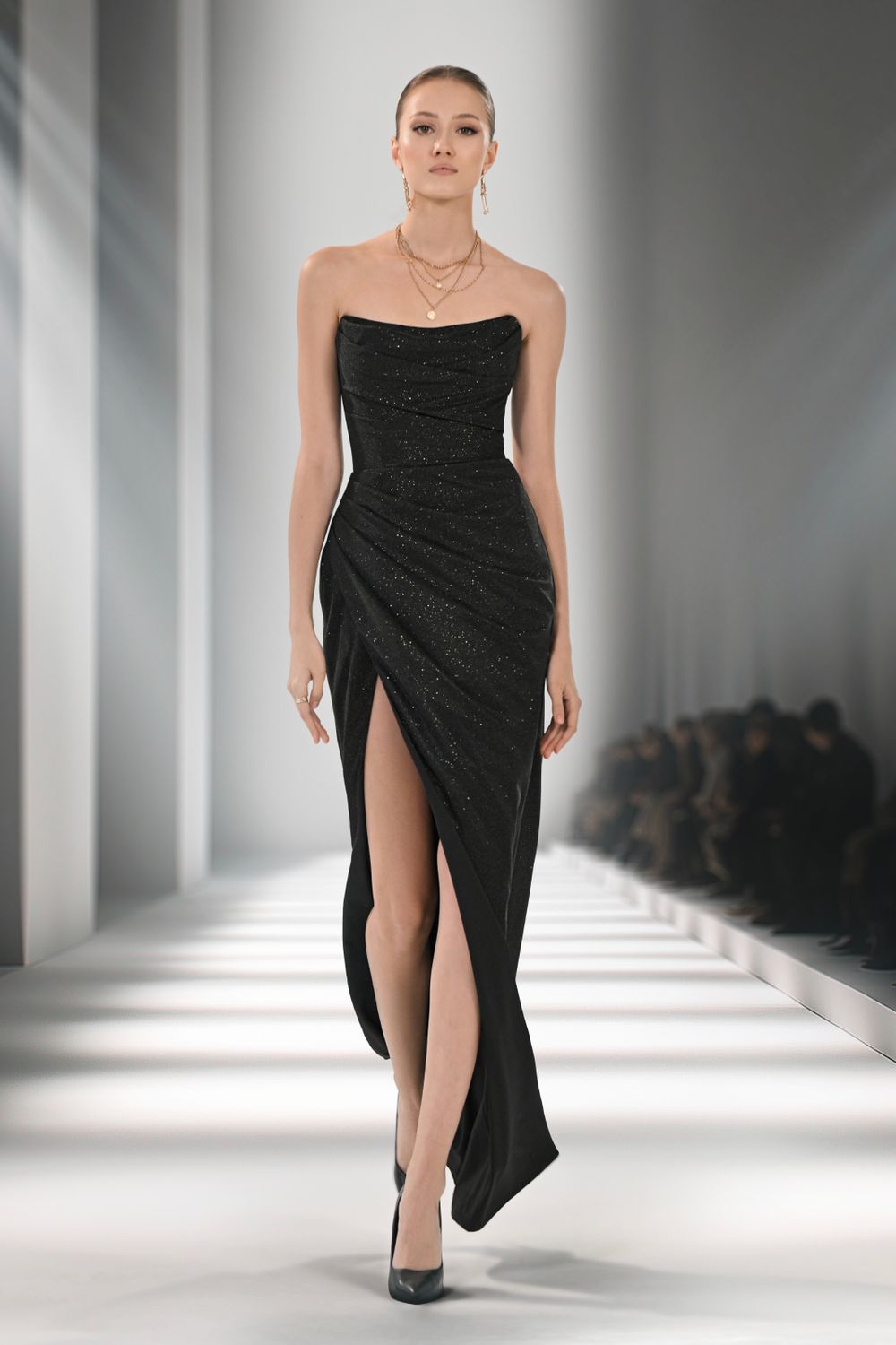 Прямые, Длинные, Лаконичные, Блестящие, С открытой спинкой, Декольте, С открытыми плечами, С корсетом, С разрезом на ноге, Коллекция 2026