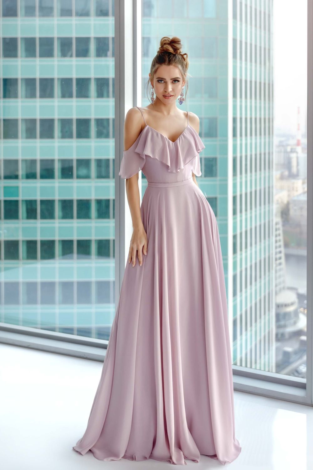 А-силуэт, Пышные, Длинные, Лаконичные, Шифоновые, С открытой спинкой, С рукавами, Декольте, На бретельках, С открытыми плечами, Без корсета