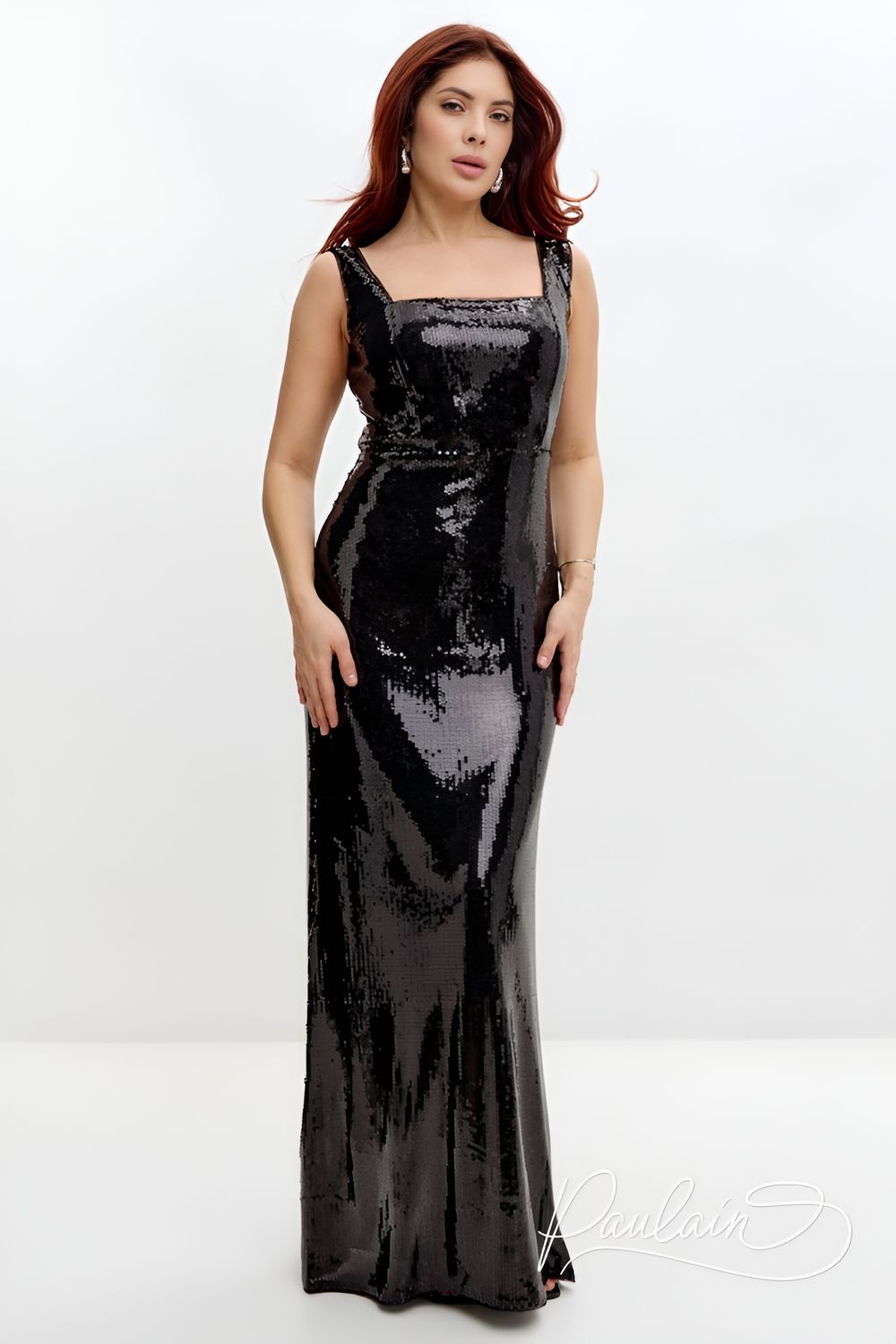 Стильное платье макси! Евросетка с микропайетками, вырез каре — ярко и модно!