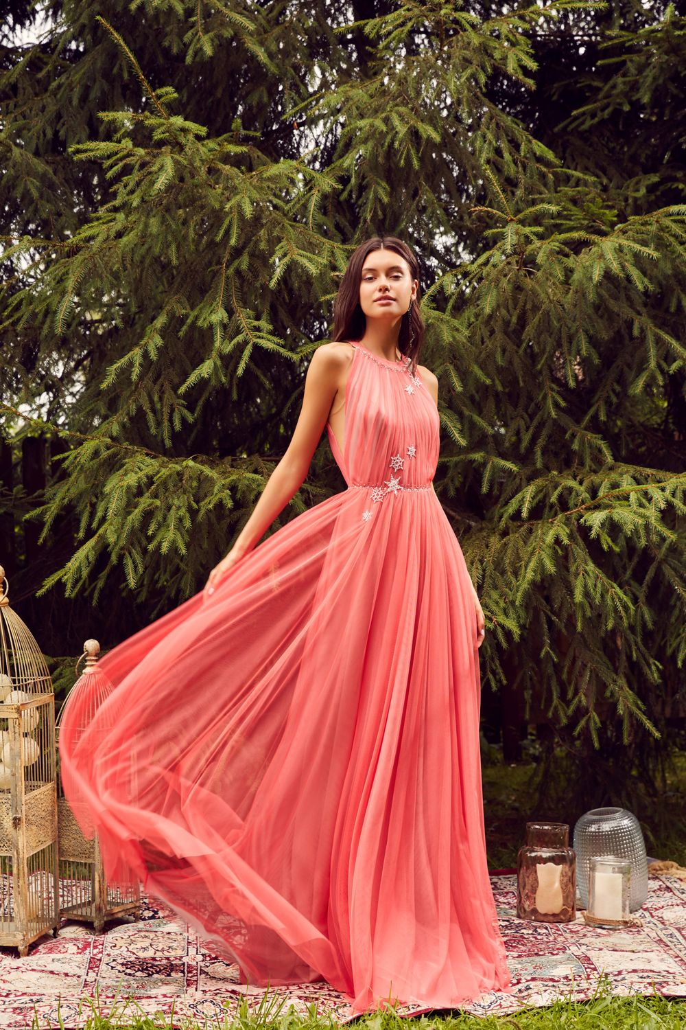 Шифоновое платье с открытой спинкой без корсета Хемена сделает ваш вечерний образ неповторимым. Модель А-силуэта создана из невесомого полупрозрачного стрейч-тюля и украшена дизайнерским декором. Лиф с открытыми плечами и глубоким вырезом на спинке плавно перетекает в прямую длинную юбку.