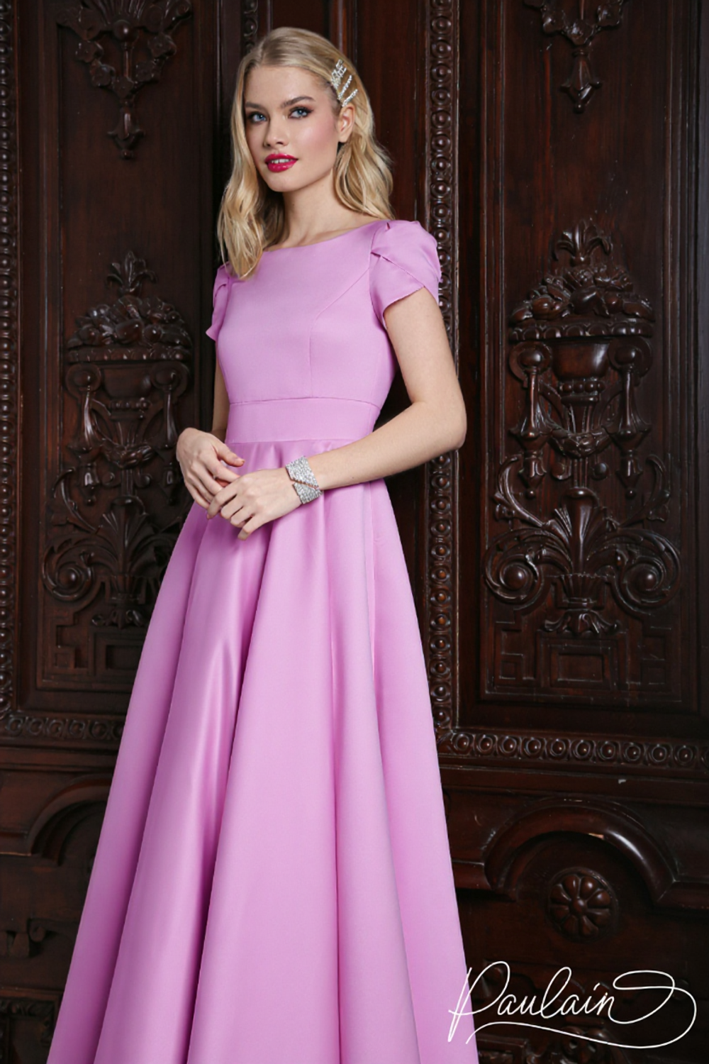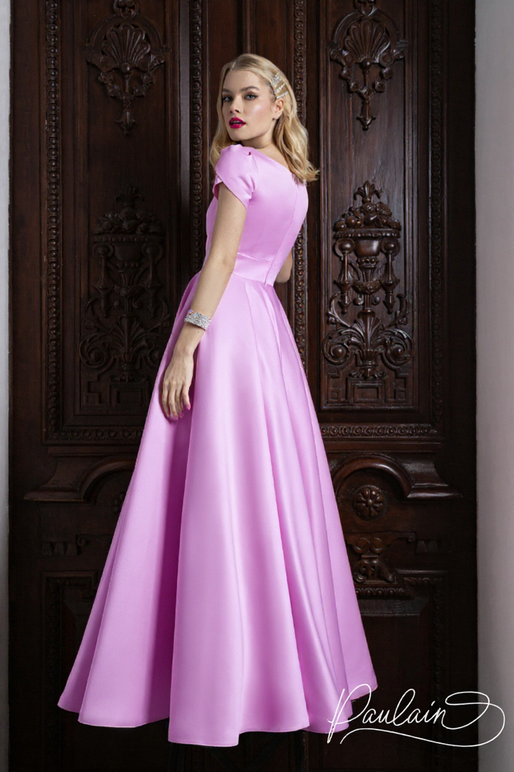 Атласное платье Тутта макси — лаконичный вечерний наряд в стиле минимализм, который придаёт благородство женственному образу. Закрытый верх с фигурными рукавами без корсета и длинная юбка со складками у пояса составляют вместе цельный А-силуэт. Линия завышенной талии подчёркнута широкой поясом