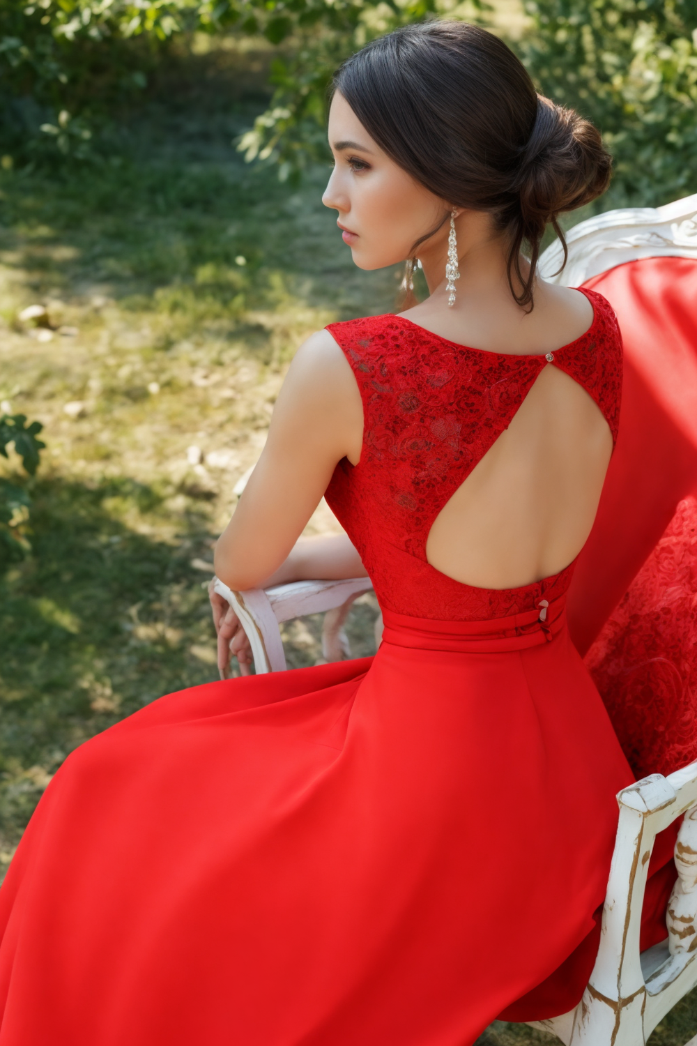 Коктейльное шифоновое платье с оригинальным вырезом на спинке Крис сделает из любой девушки королеву вечера. Закрытый верх с корсетом придаёт образу лёгкую недосказанность, нежность и особую хрупкость. Кружевной верх без рукава составляет восхитительный дуэт с длинной прямой юбкой.