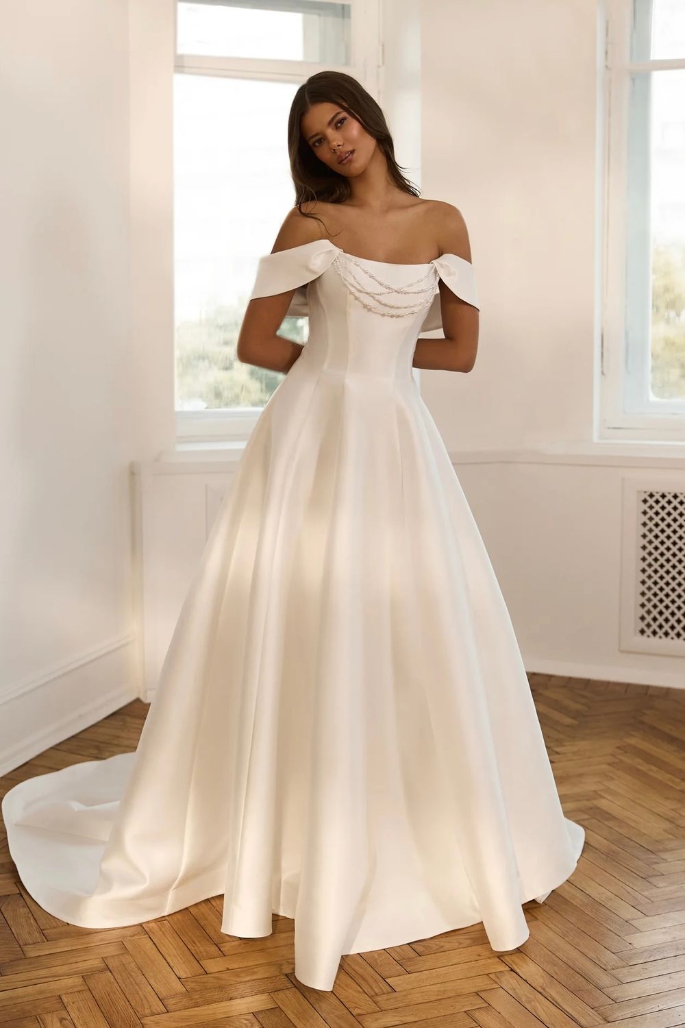 А-силуэт, Со шлейфом, Длинные, Минимализм, Лаконичные, Атласные, С открытой спинкой, Декольте, На бретельках, С открытыми плечами, С корсетом, Коллекция 2026