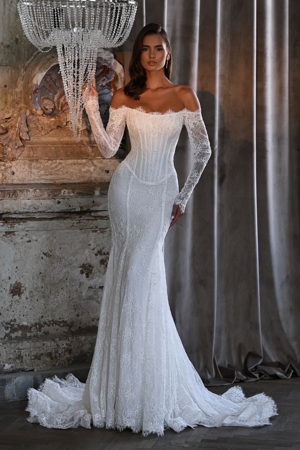 Со шлейфом, Прямые, Рыбка, Длинные, Кружевные, Блестящие, С длинным рукавом, С рукавами, Декольте, С открытыми плечами, С корсетом, Коллекция 2026