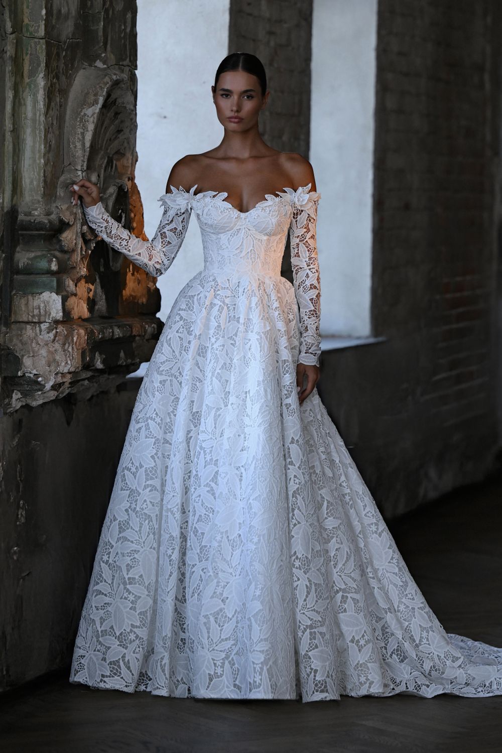 А-силуэт, Со шлейфом, Длинные, Кружевные, С открытой спинкой, С длинным рукавом, С рукавами, Декольте, С открытыми плечами, С корсетом, Коллекция 2026