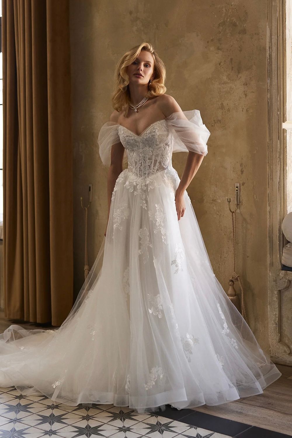 А-силуэт, Со шлейфом, Длинные, Фатиновые, Блестящие, Кружевной верх, С открытой спинкой, Декольте, На бретельках, С открытыми плечами, С корсетом, Коллекция 2026