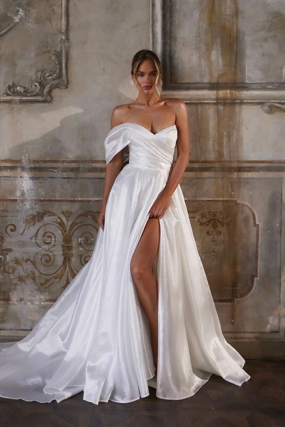 А-силуэт, Со шлейфом, Длинные, Лаконичные, Блестящие, С открытой спинкой, Декольте, На бретельках, С открытыми плечами, С корсетом, С разрезом на ноге, Тафта, Коллекция 2026
