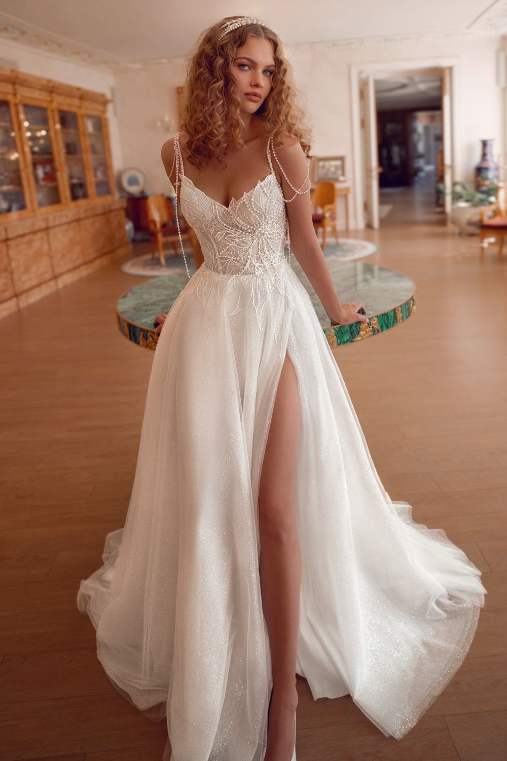 А-силуэт, Со шлейфом, Длинные, Фатиновые, Блестящие, Кружевной верх, С открытой спинкой, Декольте, На бретельках, С открытыми плечами, С корсетом, С разрезом на ноге, Коллекция 2026