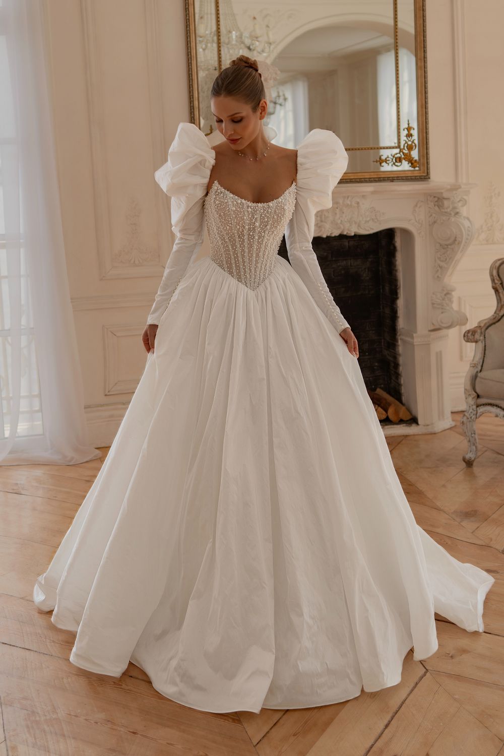 А-силуэт, Со шлейфом, Трансформеры, Длинные, Лаконичные, С открытой спинкой, С длинным рукавом, С рукавами, Декольте, С открытыми плечами, С корсетом, Съемные рукава, Тафта, Коллекция 2026