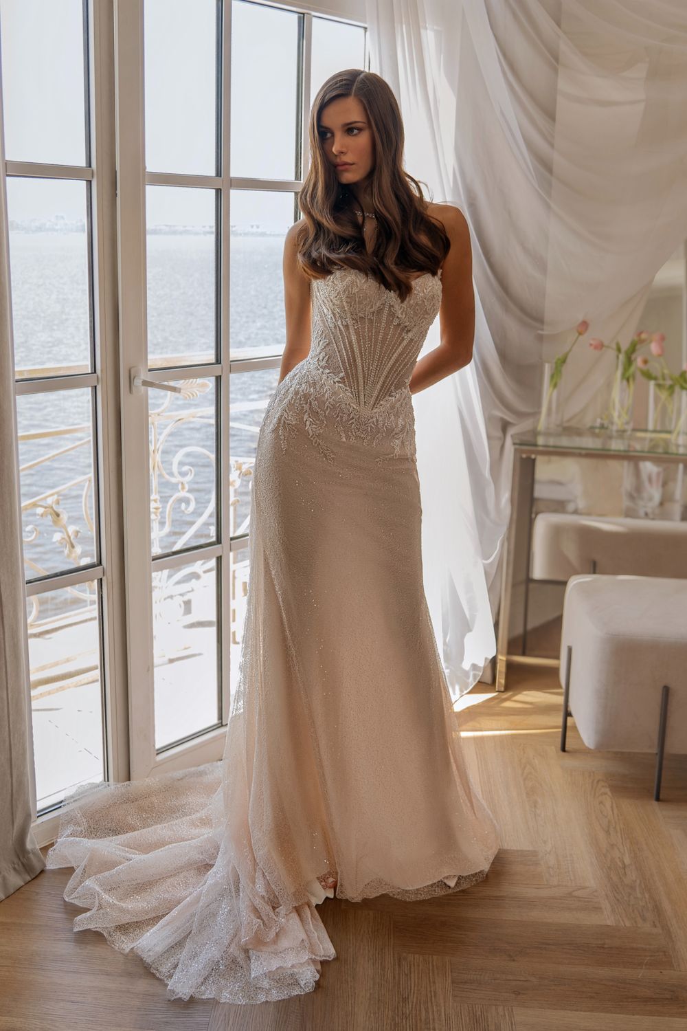 Со шлейфом, Прямые, Рыбка, Длинные, Кружевные, Блестящие, С открытой спинкой, Декольте, С открытыми плечами, С корсетом, Коллекция 2026