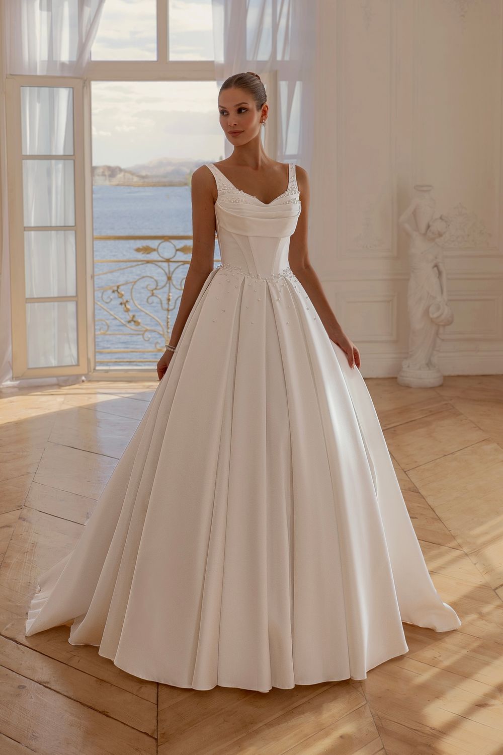 А-силуэт, Пышные, Со шлейфом, Длинные, Лаконичные, С вырезом на спинке, Декольте, С открытыми плечами, С корсетом, Микадо, Коллекция 2026