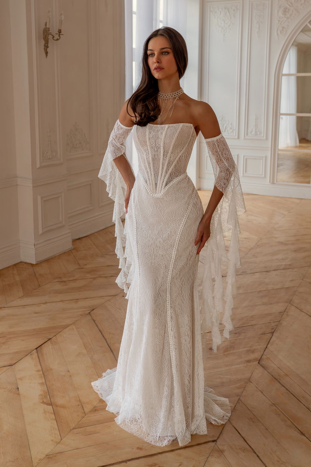 Со шлейфом, Трансформеры, Прямые, Рыбка, Длинные, Кружевные, С открытой спинкой, С длинным рукавом, С рукавами, Декольте, С открытыми плечами, С корсетом, Съемные рукава, Коллекция 2026