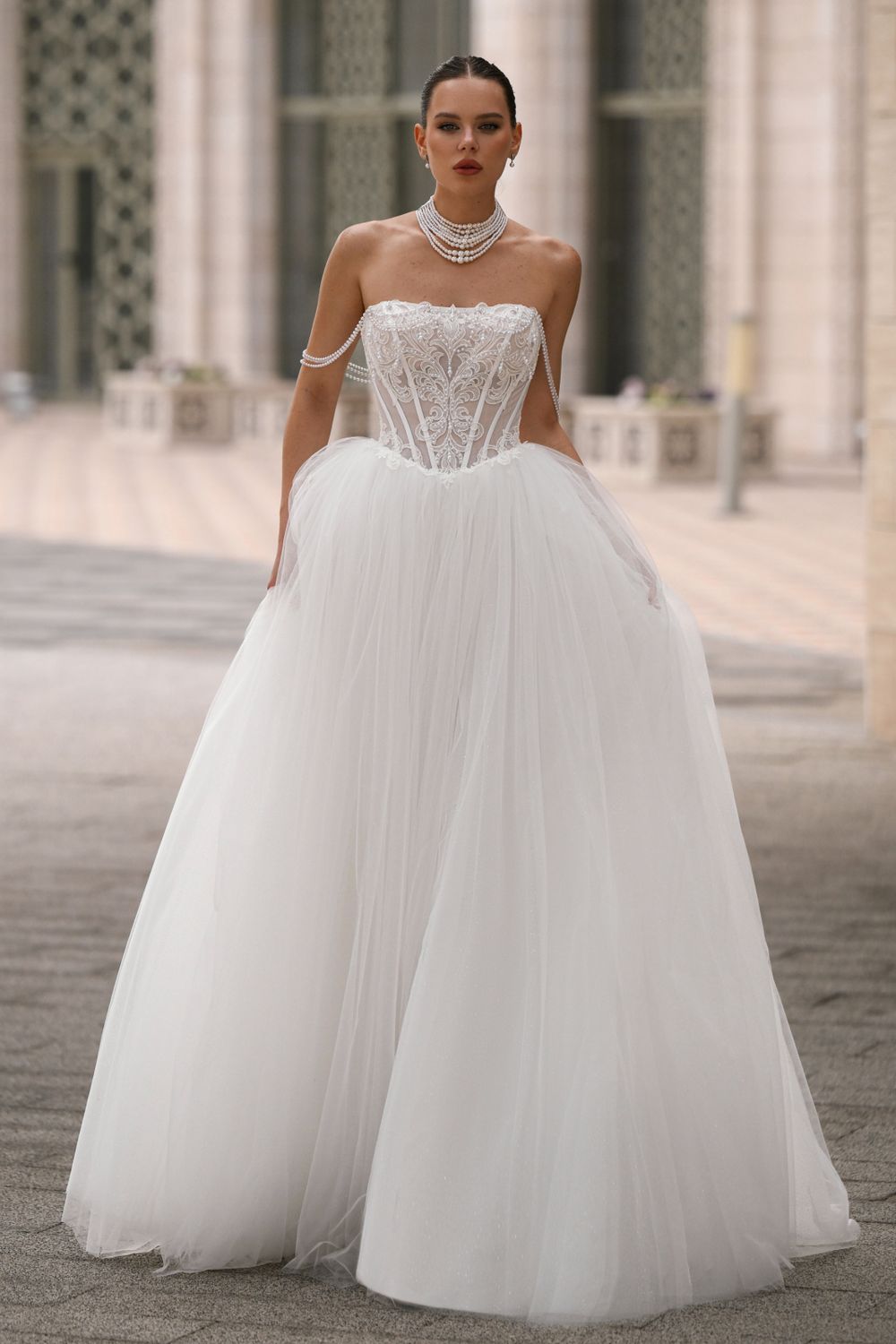 А-силуэт, Пышные, Со шлейфом, Длинные, Фатиновые, Блестящие, С открытой спинкой, Декольте, На бретельках, С открытыми плечами, С корсетом, Коллекция 2026