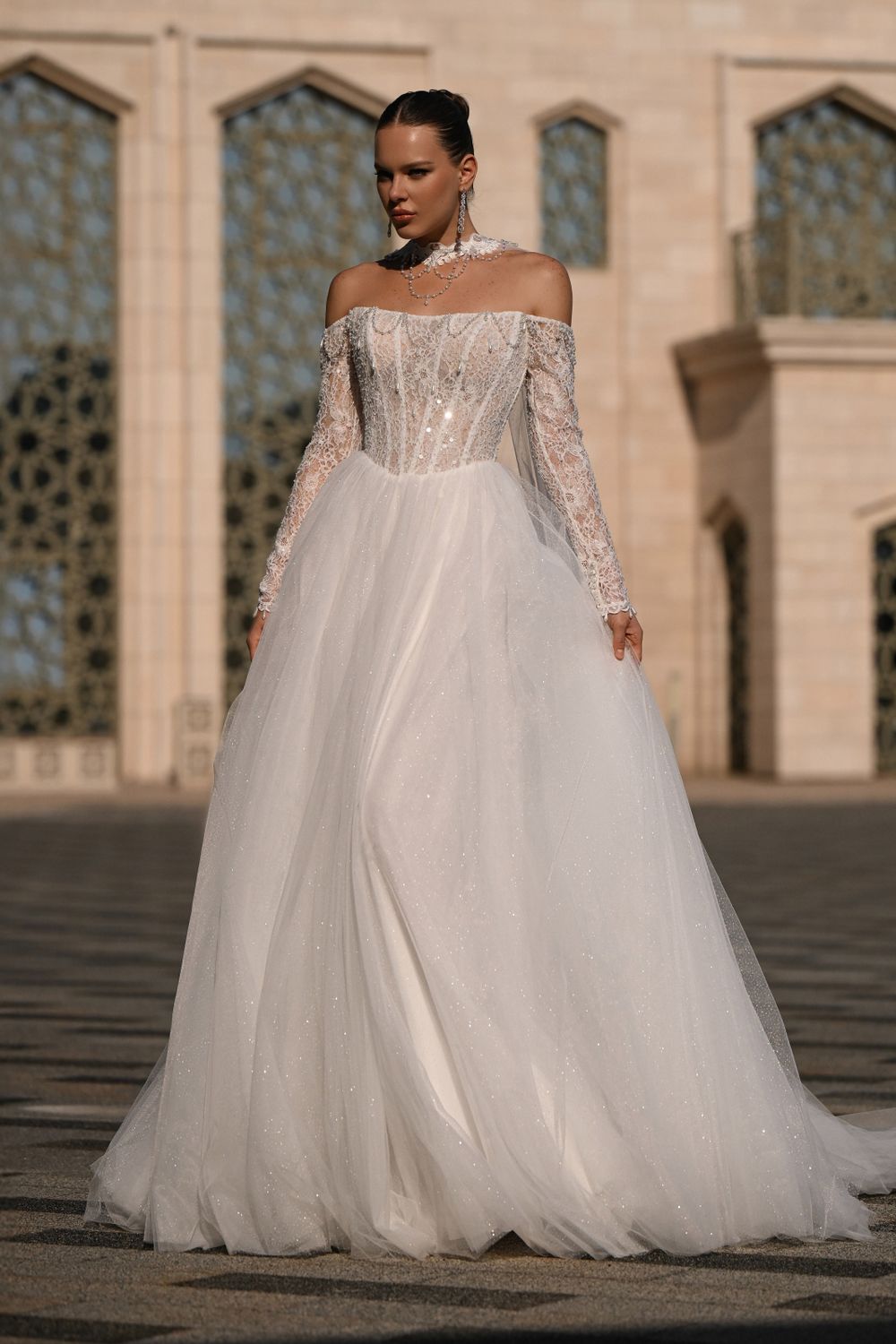 А-силуэт, Пышные, Со шлейфом, Трансформеры, Длинные, Блестящие, Кружевной верх, С длинным рукавом, С рукавами, Декольте, С открытыми плечами, С корсетом, Коллекция 2026