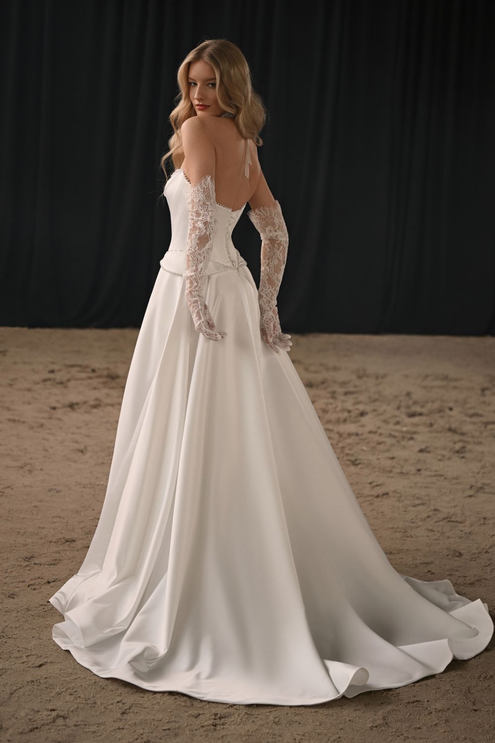 А-силуэт, Со шлейфом, Длинные, Минимализм, Лаконичные, Атласные, С открытой спинкой, Декольте, С открытыми плечами, С корсетом, Коллекция 2026