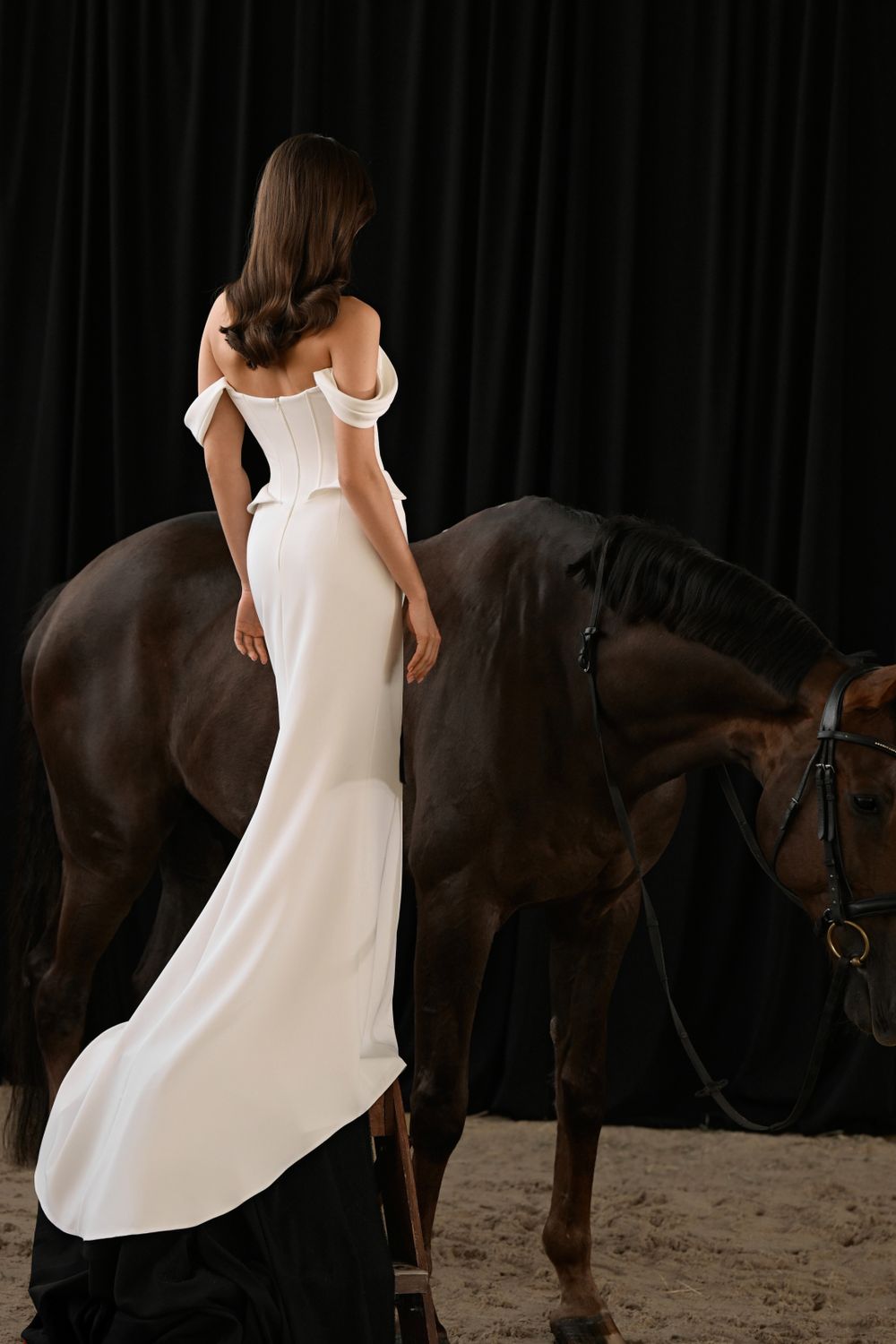 Со шлейфом, Прямые, Рыбка, Длинные, Минимализм, Лаконичные, С открытой спинкой, Декольте, На бретельках, С открытыми плечами, С корсетом, Креп, Коллекция 2026