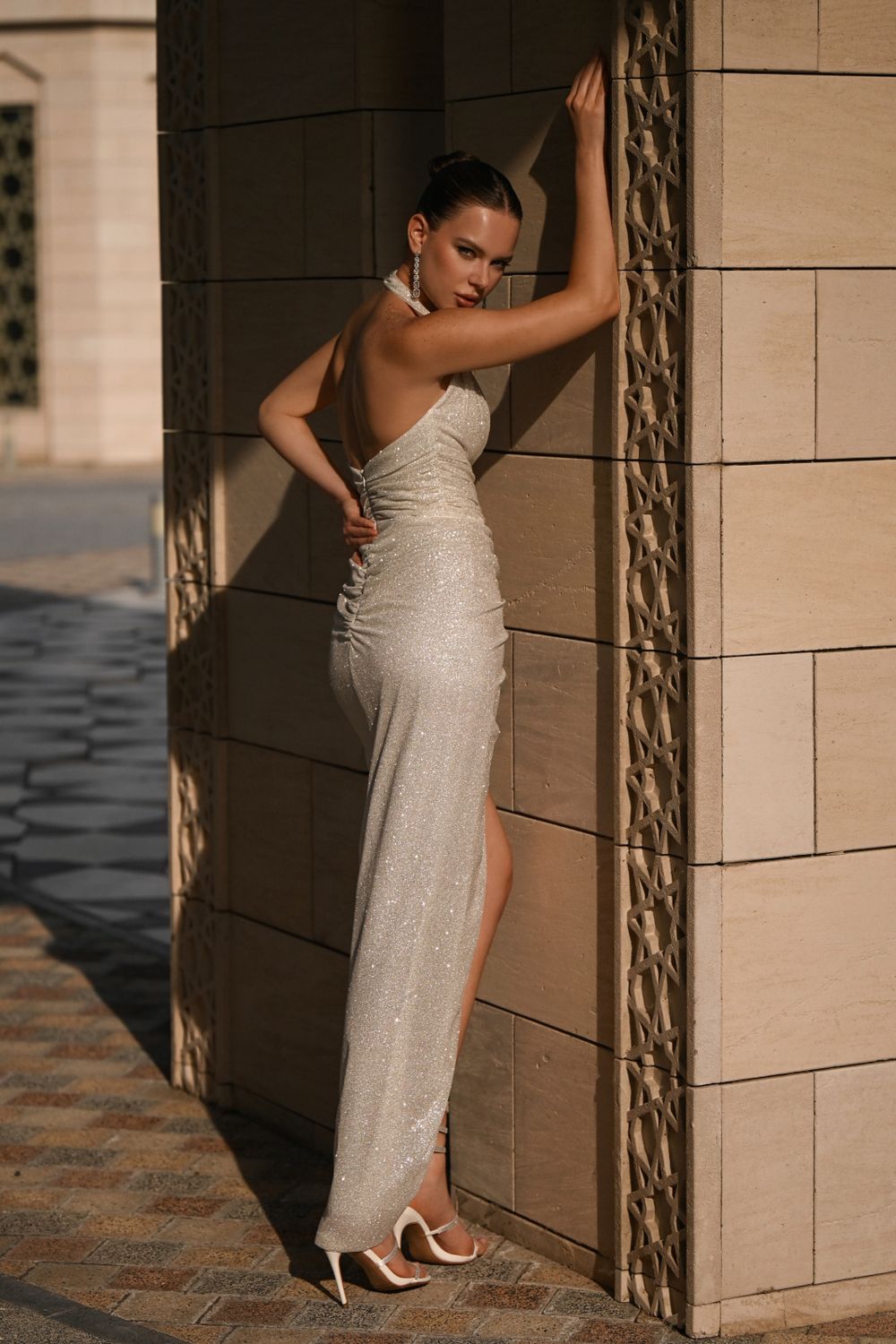 Прямые, Длинные, Лаконичные, Блестящие, С открытой спинкой, На бретельках, С открытыми плечами, Без корсета, С разрезом на ноге, V вырез, для ЗАГСа, Коллекция 2026