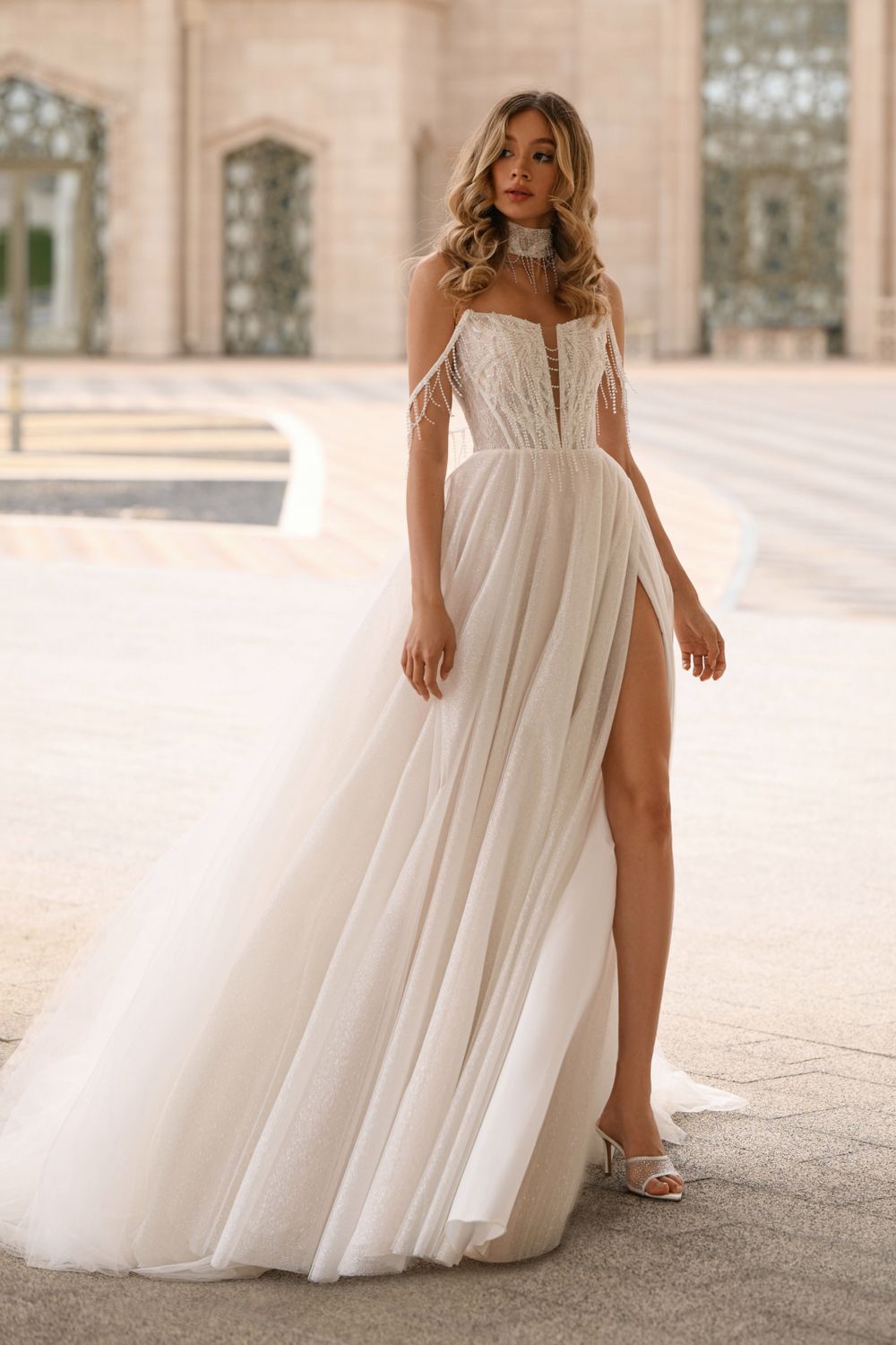 А-силуэт, Пышные, Со шлейфом, Длинные, Фатиновые, Блестящие, С открытой спинкой, На бретельках, С открытыми плечами, С корсетом, С разрезом на ноге, V вырез, Коллекция 2026