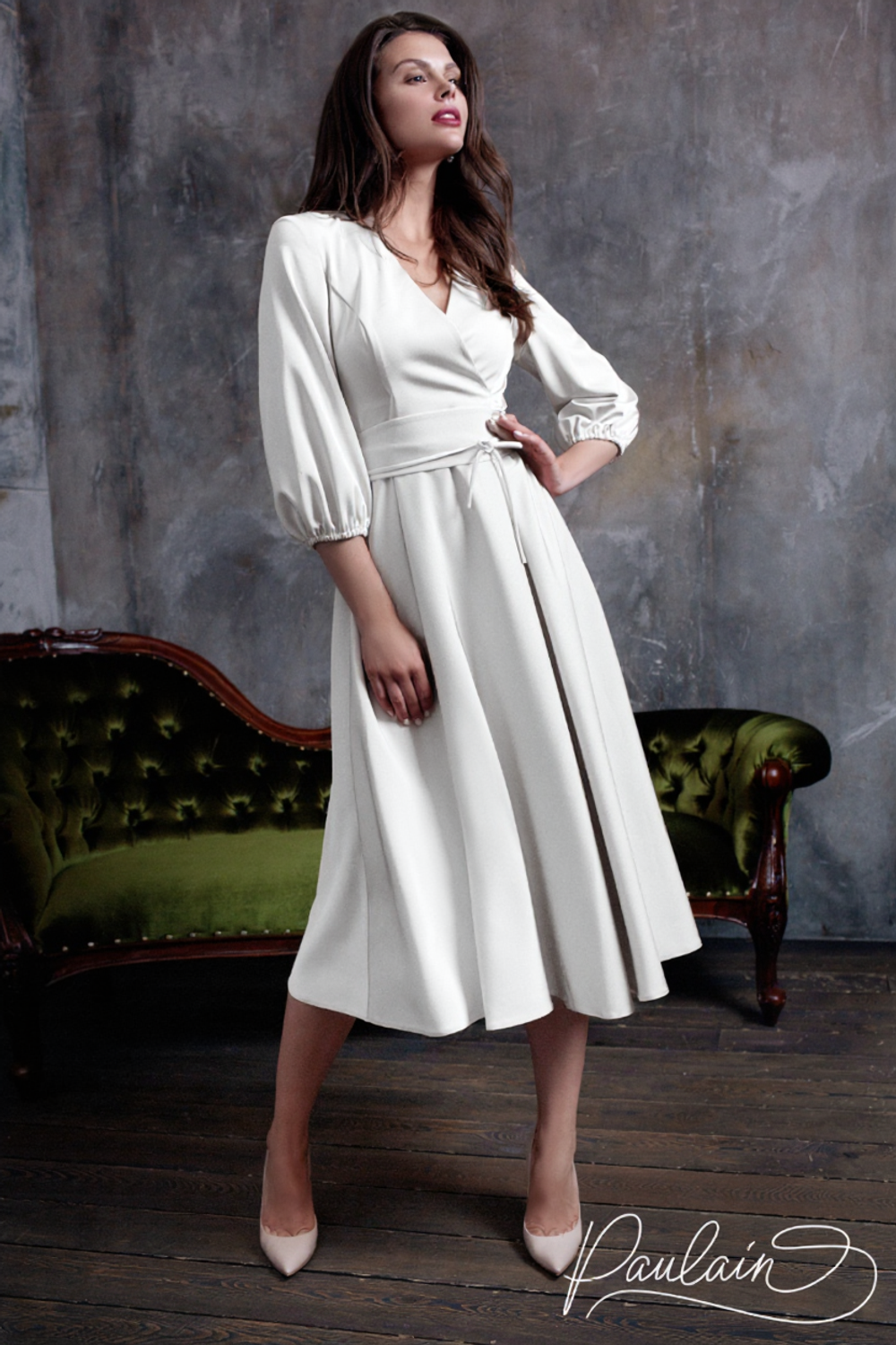 Атласное коктейльное платье без корсета с длинными рукавами Джой – идеальный выбор для стильного и продуманного образа. Лаконичный дизайн, где всё тщательно продумано, привлекает внимание. Юбка миди из струящегося шёлка собирается в элегантные вертикальные складки. Украшает модель V-вырез горловины и крошечный бантик с короткими шнурками на талии.